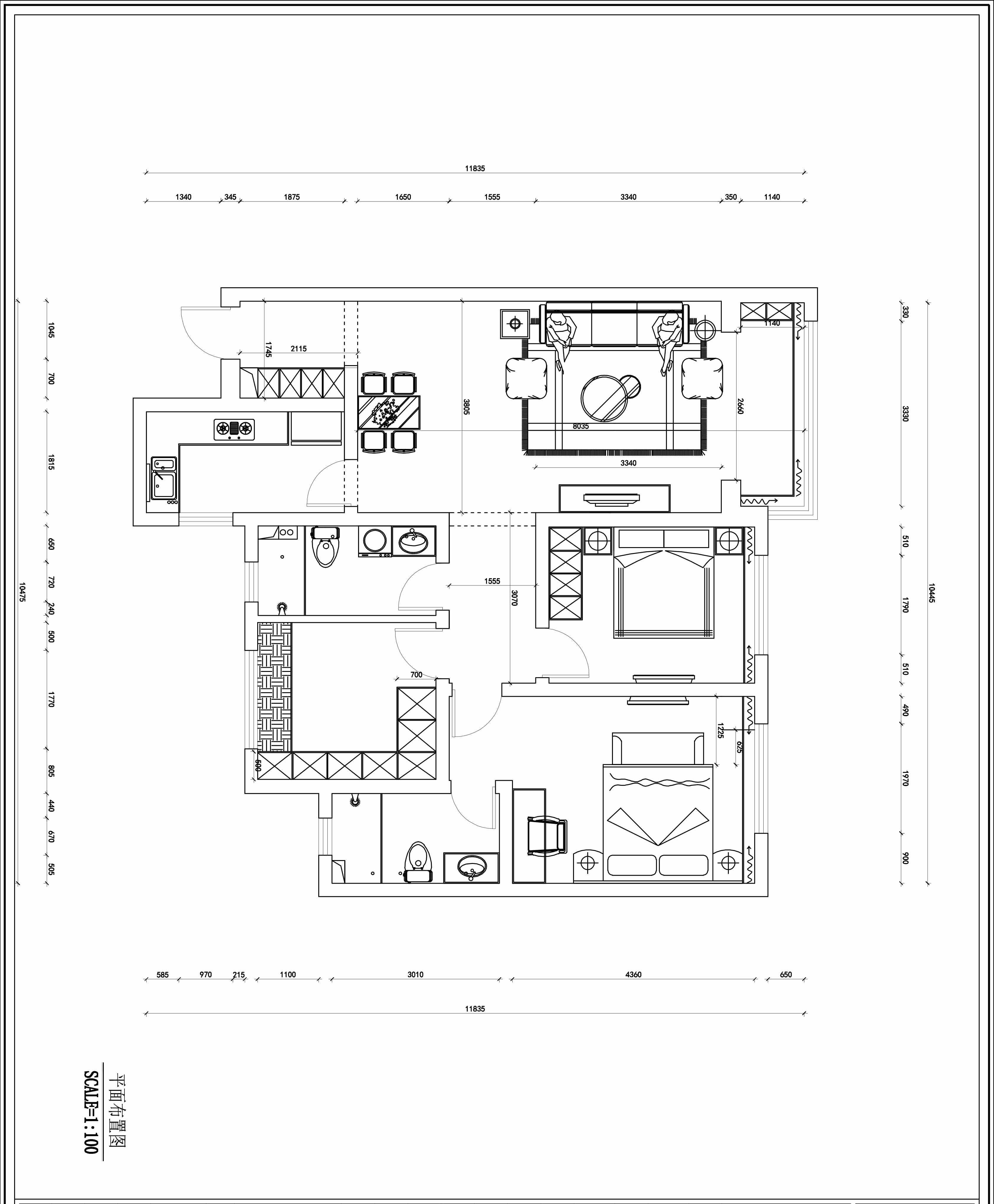 潮白河孔雀城110㎡兩居室現代簡約風格