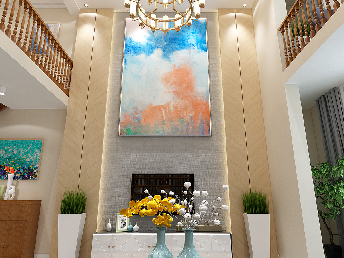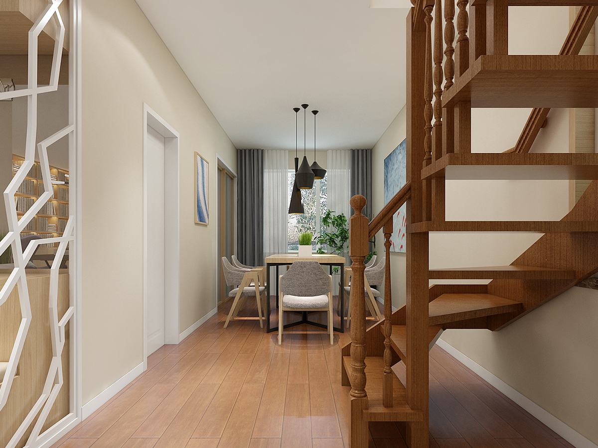 此戶型采用簡(jiǎn)約的現(xiàn)代設(shè)計(jì)風(fēng)格,因?yàn)樵瓚粜统送鈮]有格局布置,布局需要全部重新設(shè)計(jì),在結(jié)構(gòu)上進(jìn)行改動(dòng),加建二層打造復(fù)式結(jié)構(gòu)。后期在家具、配飾上做了精心的布置??蛷d地面選用米黃色淺色玻化磚,讓居室現(xiàn)得干凈利落。墻面用筒燈的燈光渲染,給人一種朦朧的意境美。尤其是電視背景墻和掛畫,體現(xiàn)了現(xiàn)代低調(diào)的風(fēng)格。整體風(fēng)格莊重而不失溫馨。