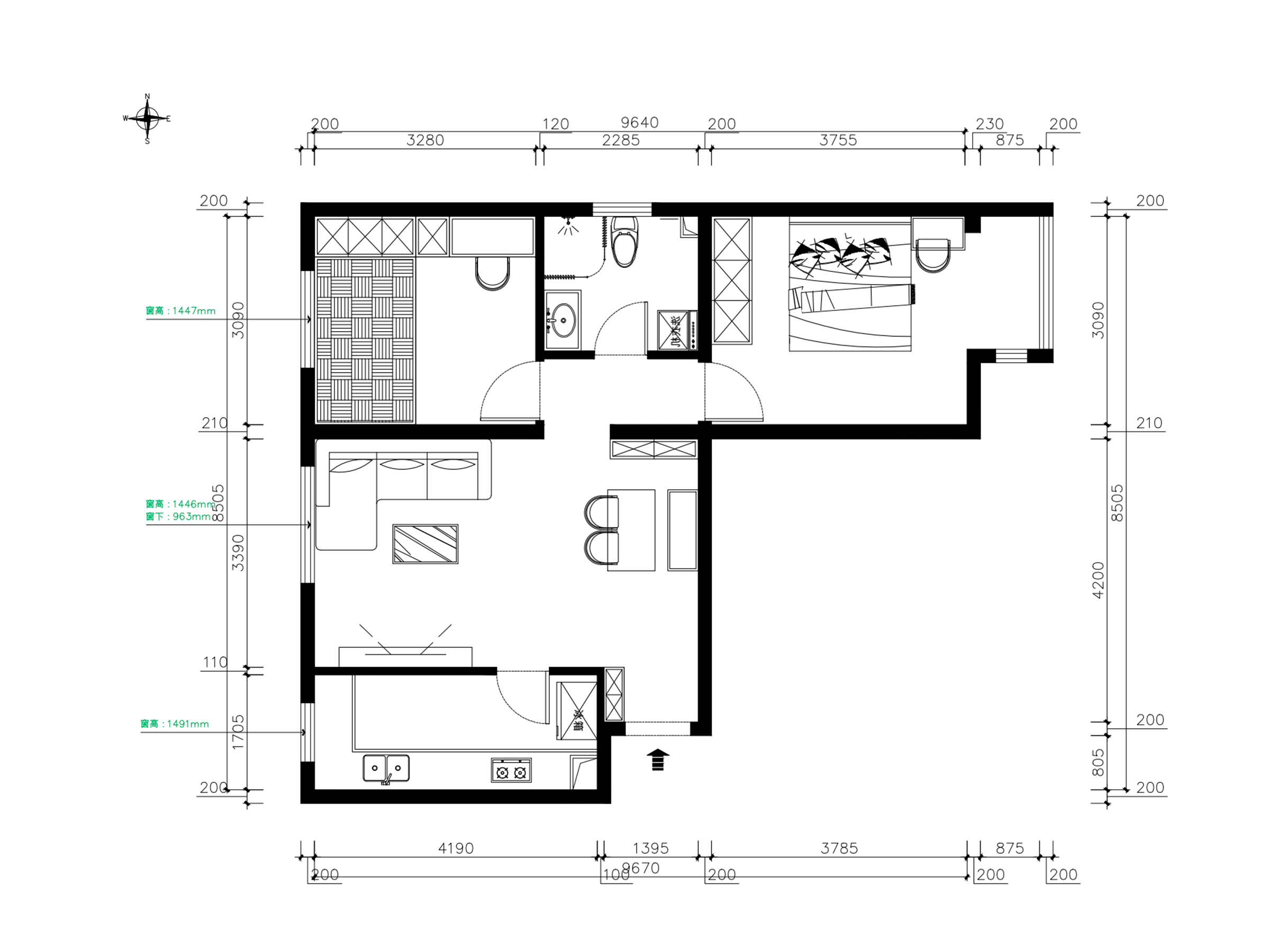 潮白河孔雀城110㎡兩居室現代簡約風格