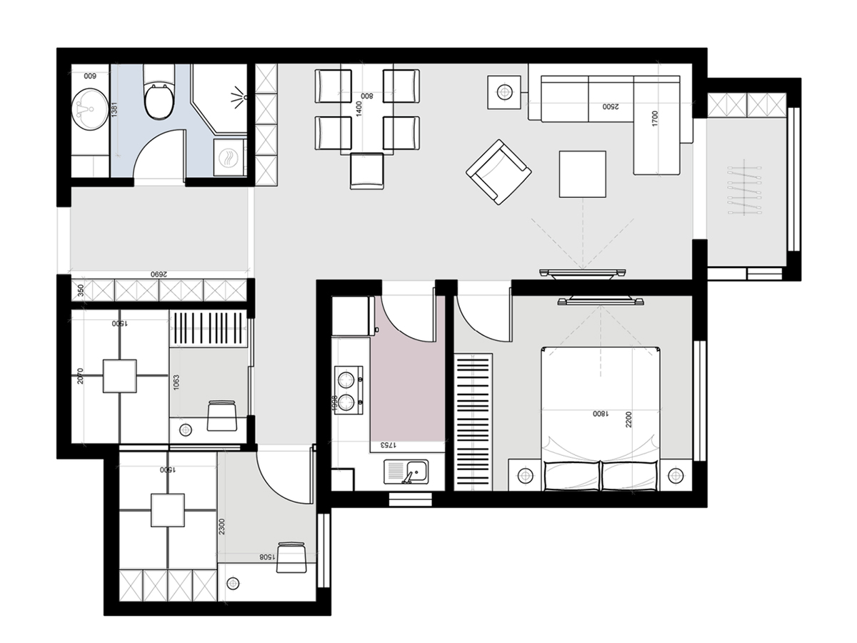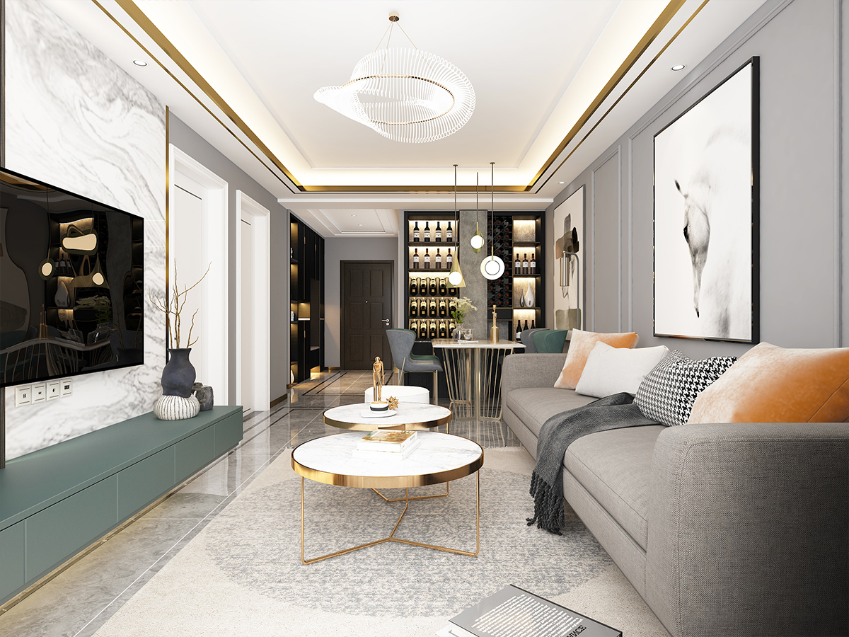 該案原始戶型是一個兩居室 ,對于空間的需求首先滿足的是客戶三代人五號之家的居住需求。孩子男孩現(xiàn)在上小區(qū),父母偶爾會來住,但臥室必須要獨立。在居住習慣上女主人喜歡干凈簡潔的灰色系,通過溝通最終確定做現(xiàn)代輕奢。為了滿足需求在原有兩居室的基礎上規(guī)劃了三居室。衛(wèi)生間也同時改為干濕三式分離。為了突出空間特性,在整體色調上保持黑白灰的主調,加入暖色燈來調節(jié)空間氛圍。在高冷的空間中有不失柔和的一面。