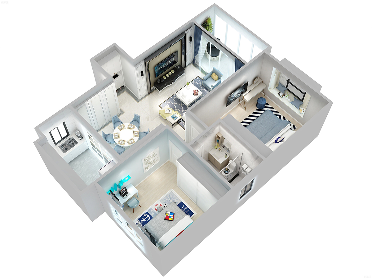 鴻坤理想城84平北歐風格裝修案例