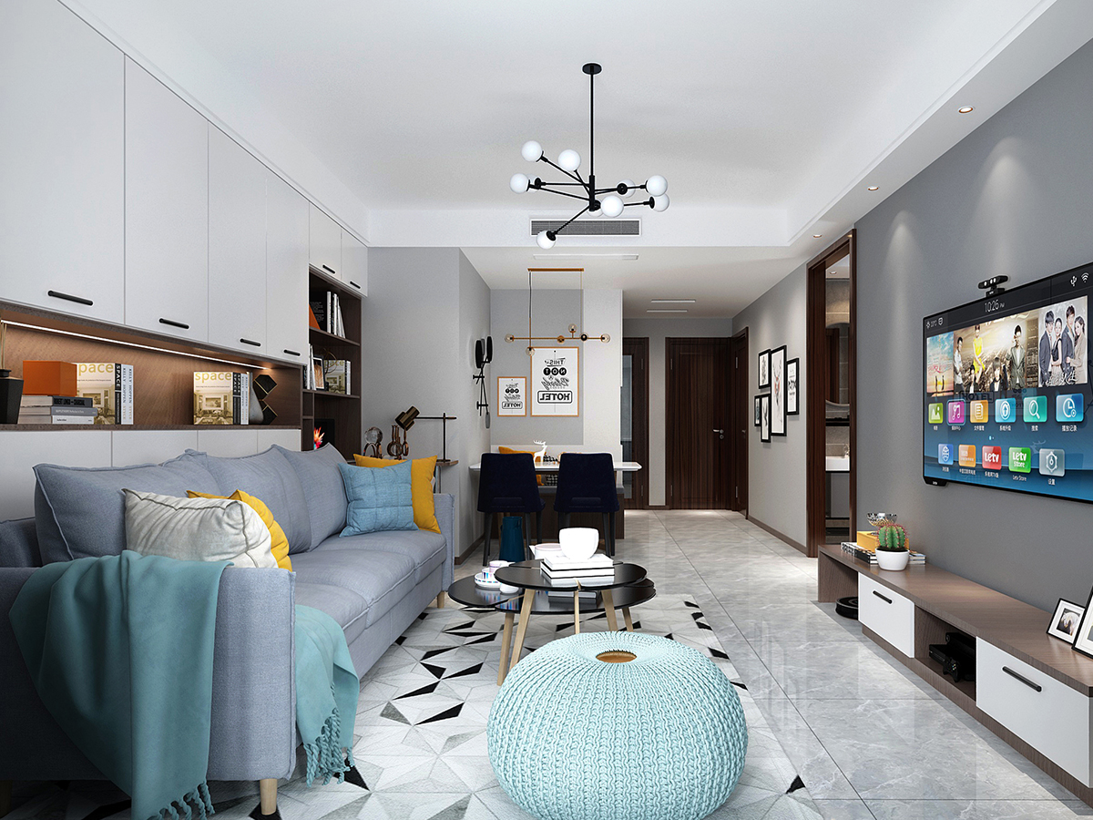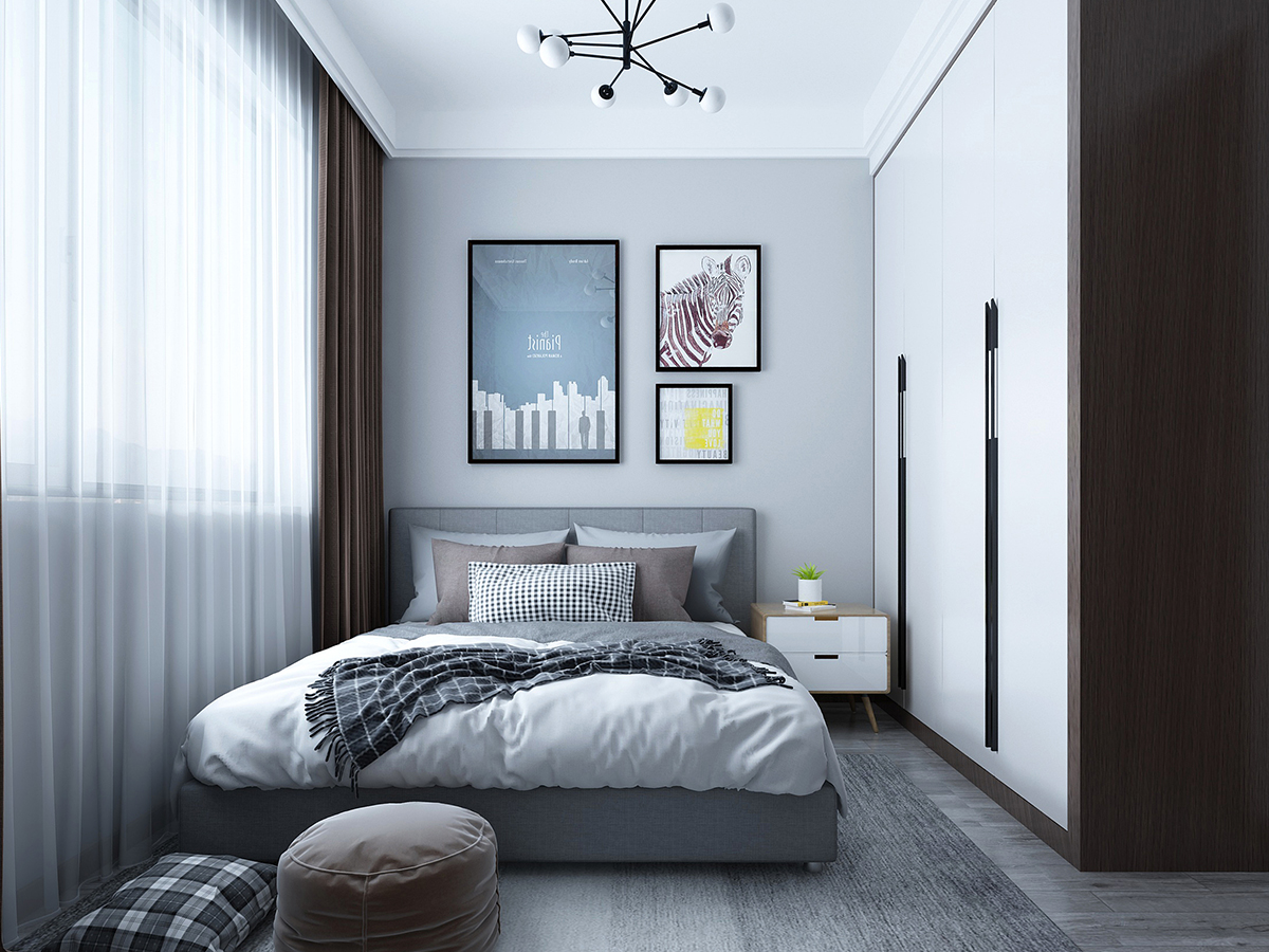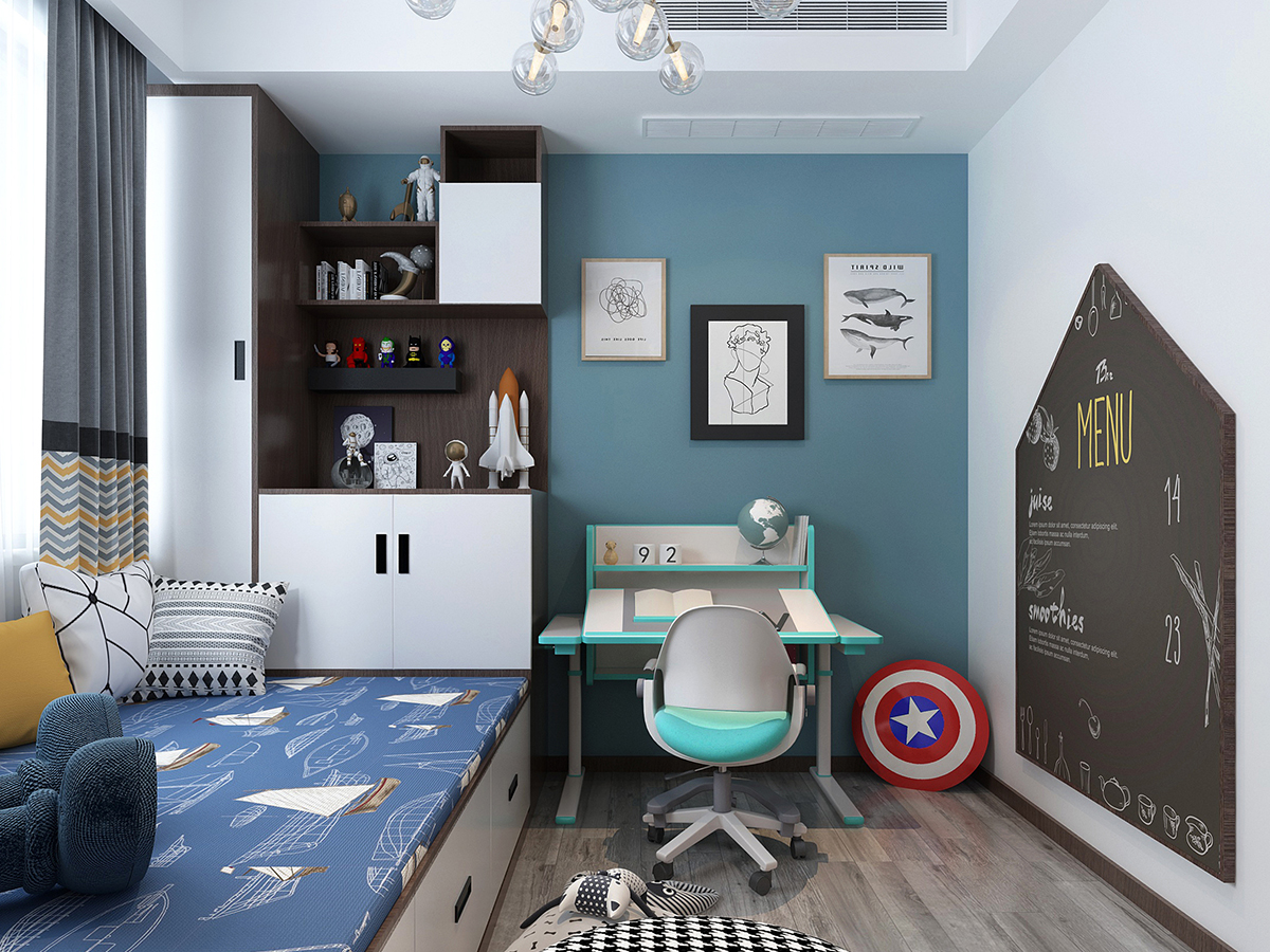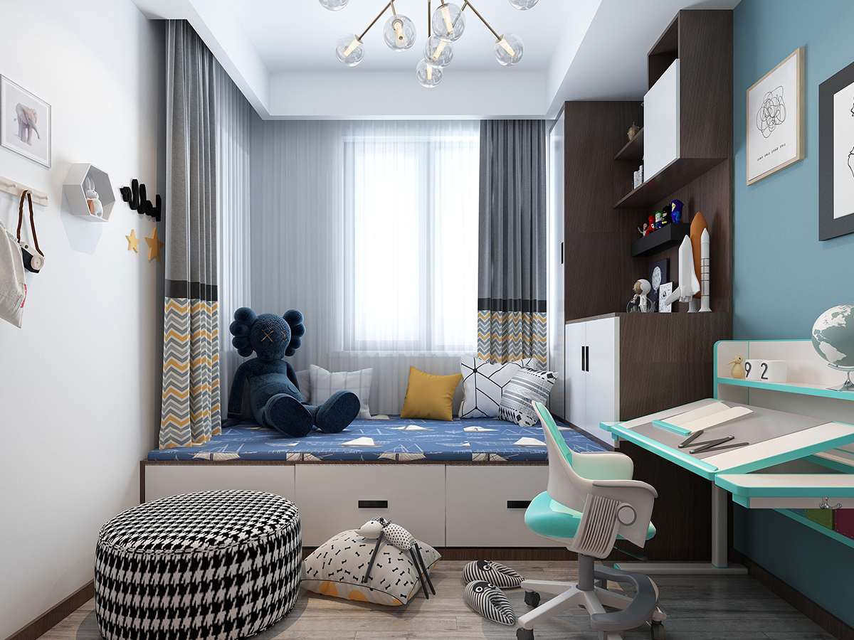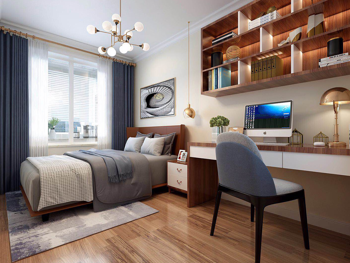 業主是喜歡自由自在的無憂無慮的生活,所以裝修不喜歡特別復雜,因此推薦的是現代簡約風格。本案例總計三居室,三代人居住,因此分為主臥、老人房、兒童房,業主愛人比較有品位的80后,所以希望把主臥室裝修有品味些,主臥室的床頭背景墻以石膏板雕刻出縱向的凹槽凸顯出整個房間的立體感,然后用彩色墻漆美化裝飾,因此顯示出主臥室的淡雅而又溫馨。另外只有7平米的兒童房,由于面積比較小所以布置家居很受影響,因此考慮的是定制榻榻米床和書桌書柜一體化的家具,這樣既節約了空間又滿足了所有的需求。