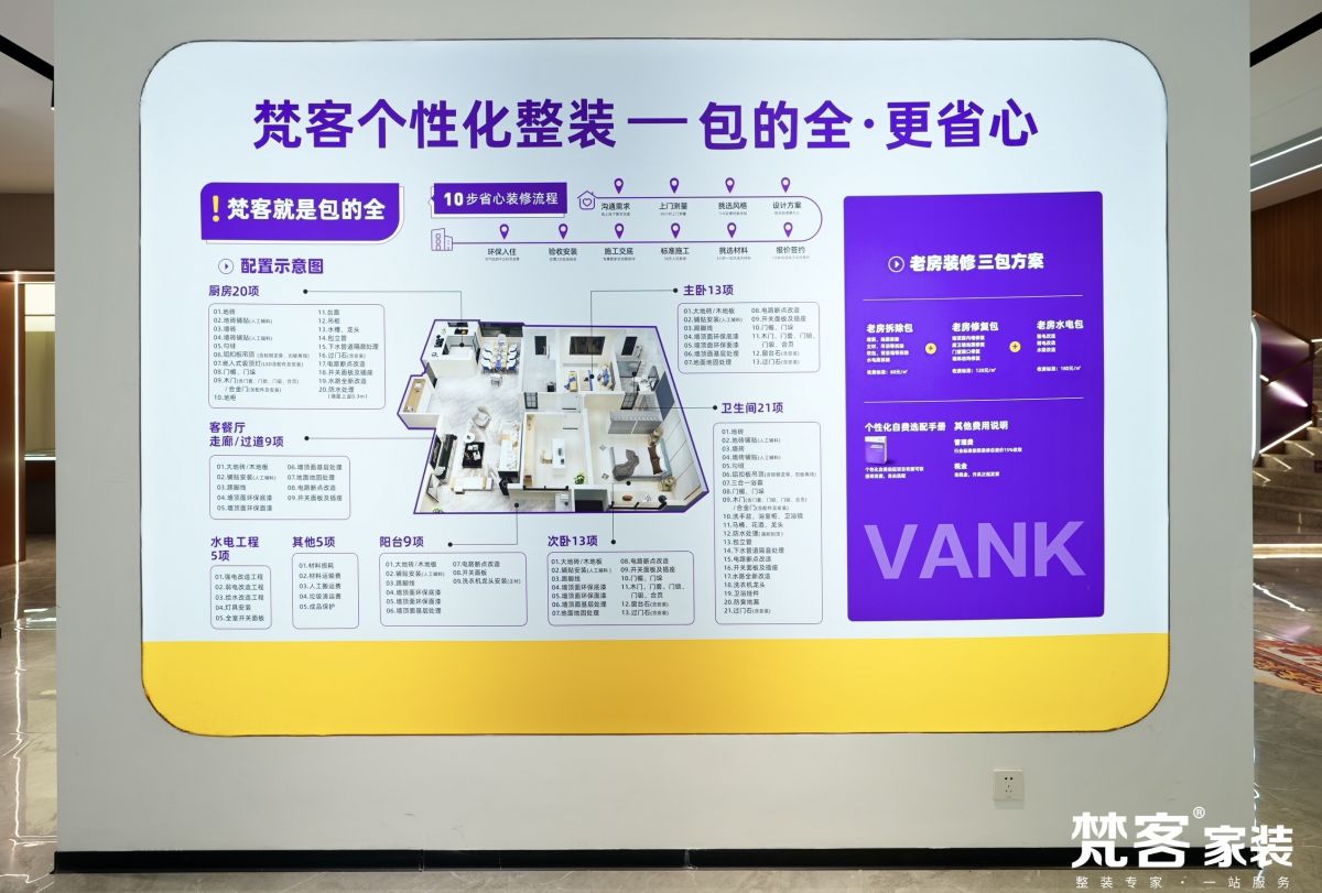 透明化是梵客家裝建立消費信任的關鍵。長期以來,“增項漏項”是家裝行業的沉疴頑疾,也是消費者最為擔憂的問題之一。為徹底解決這一痛點,梵客家裝主動發布《透明家裝個性化自費項目選配手冊》,將裝修過程中的標配項目、選配項目、收費標準等全部清晰列明,做到項目透明、價格透明、工藝透明。