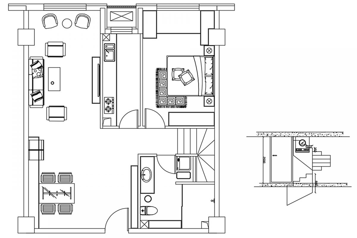 層高4.4米普通開間,利用率并不高。改為Loft結構,等于多搭建一層挑空層,變成上下兩層,充分利用了縱向空間,戶型也在原來基礎上增加了2室1衛,拓展了功能區。