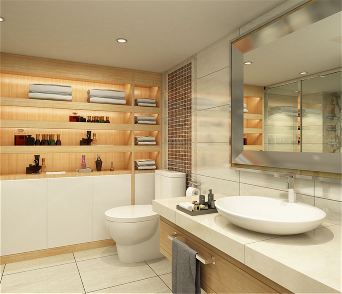主衛的裝修和身體舒適度息息相關,好的馬桶、淋浴、浴缸等,都能提升生活的品質感。6平米的面積,有三處亮點:鏡柜,懸空洗手臺,燈源